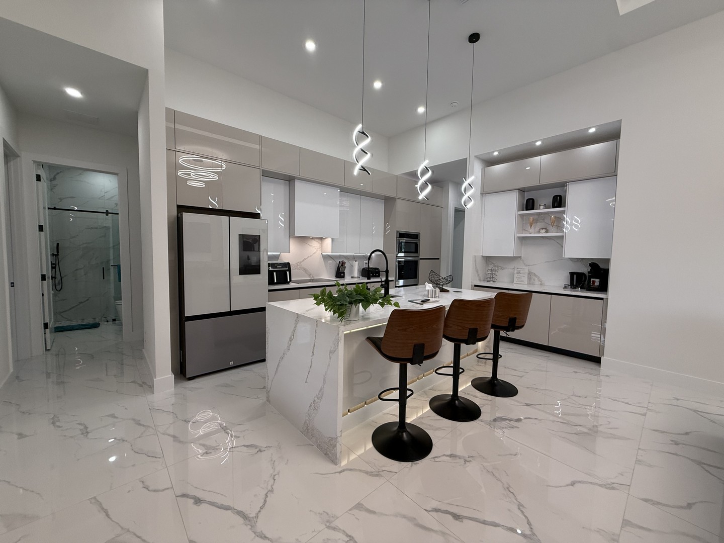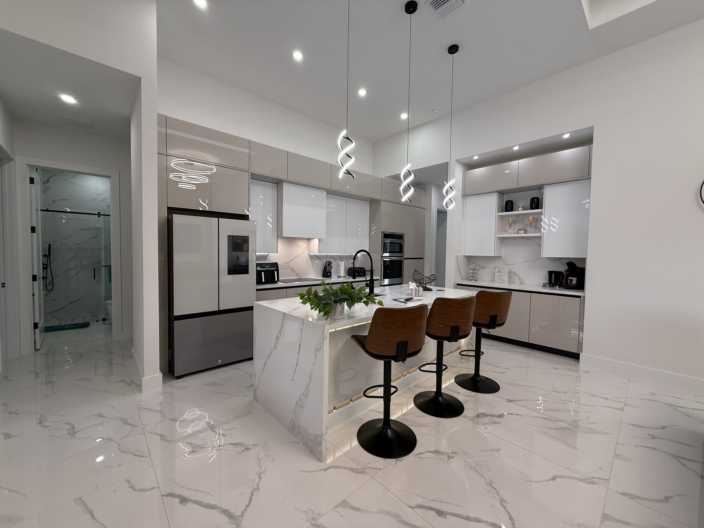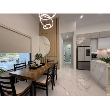 Lassen Sie sich schon beim Betreten unserer Villa Water Pearl von der perfekten Mischung aus Luxus, Charme, Komfort und Gemütlichkeit begeistern. Das Haus besticht durch wunderschöne hohe Decken und einen offenen lichtdurchfluteten Grundriss. Das Herzstück bildet die mit allem Equipment ausgestattete moderne Küche mit eleganten Schränken, erstklassigen Geräten, einer Kücheninsel mit Frühstücksbar, geschmackvollen Quarz-Oberflächen und einer zusätzlichen Coffee-Bar.
