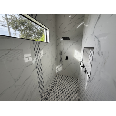 feature walk-in showers.