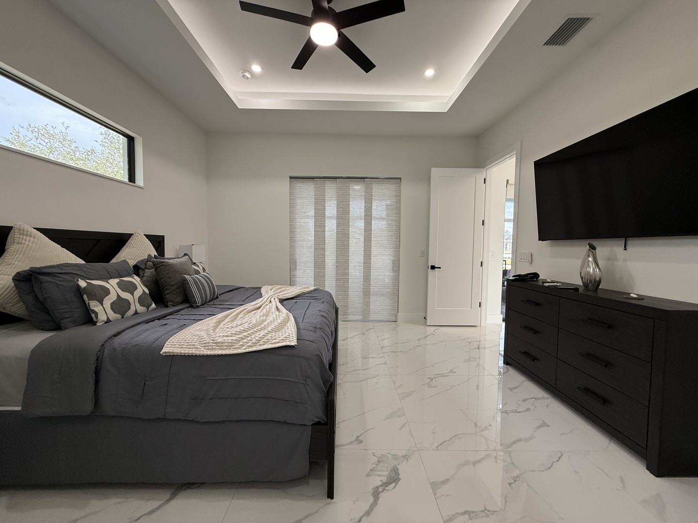 The spacious master bedroom, with direct access to the terrace