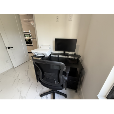 walk-in closets, one of which can also be used as an office.