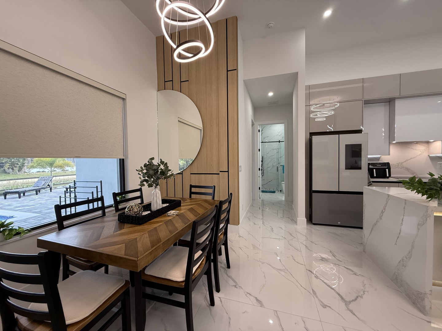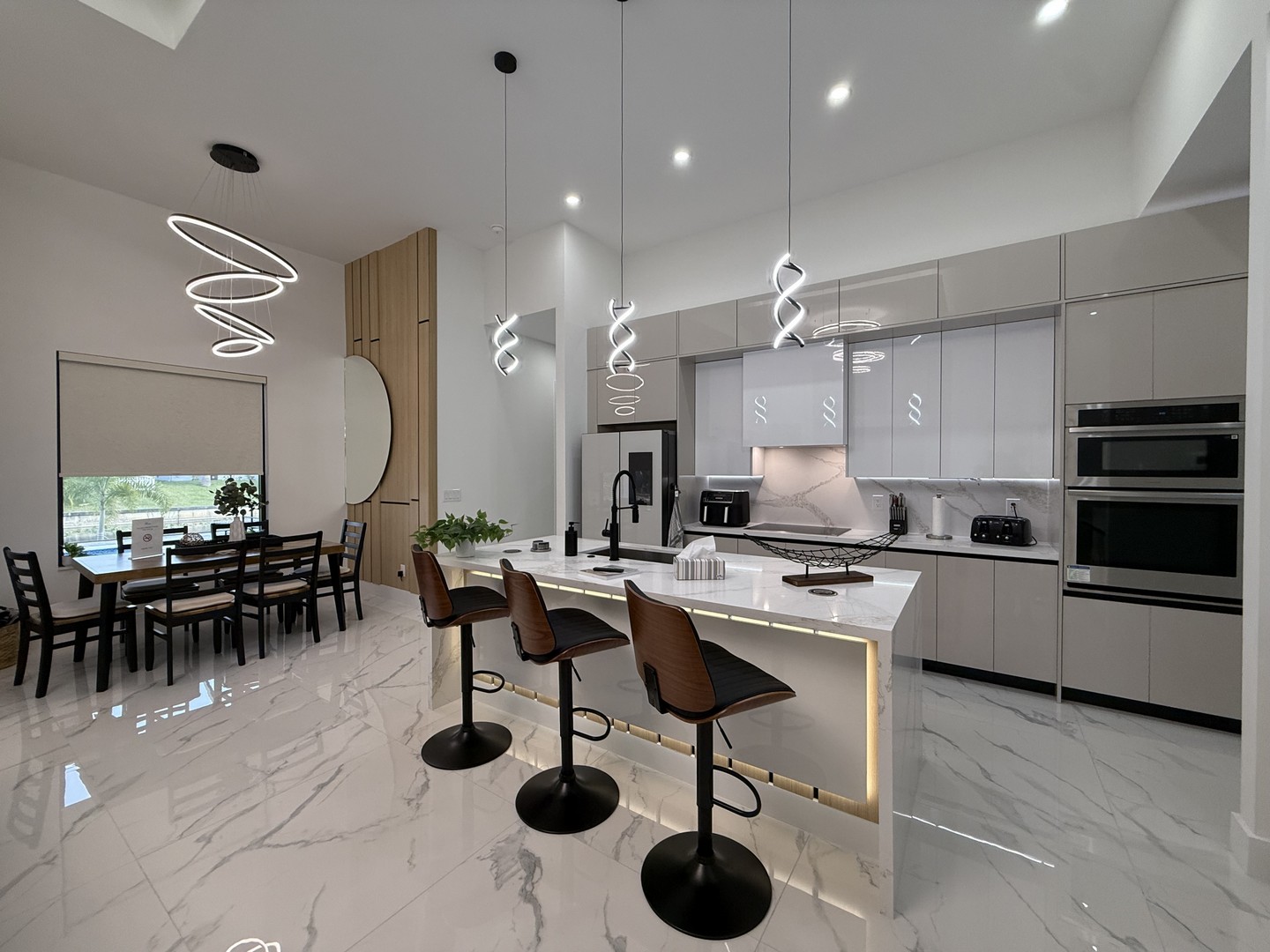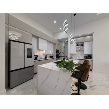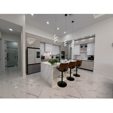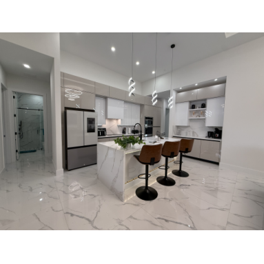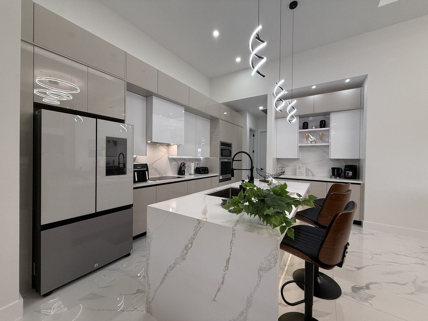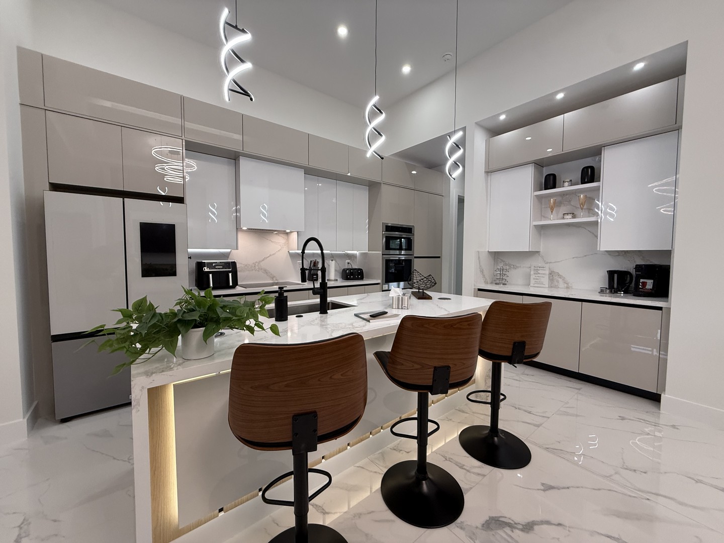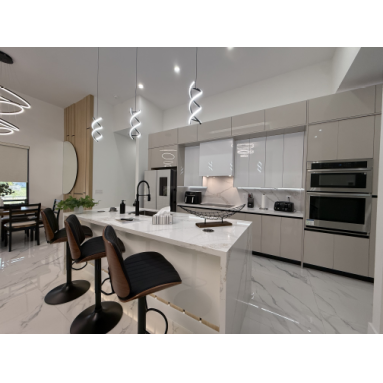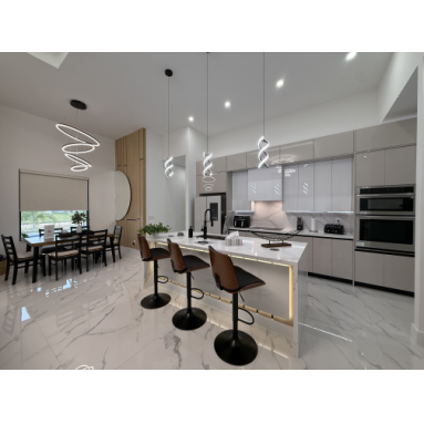 Lassen Sie sich schon beim Betreten unserer Villa Water Pearl von der perfekten Mischung aus Luxus, Charme, Komfort und Gemütlichkeit begeistern. Das Haus besticht durch wunderschöne hohe Decken und einen offenen lichtdurchfluteten Grundriss. Das Herzstück bildet die mit allem Equipment ausgestattete moderne Küche mit eleganten Schränken, erstklassigen Geräten, einer Kücheninsel mit Frühstücksbar, geschmackvollen Quarz-Oberflächen und einer zusätzlichen Coffee-Bar.