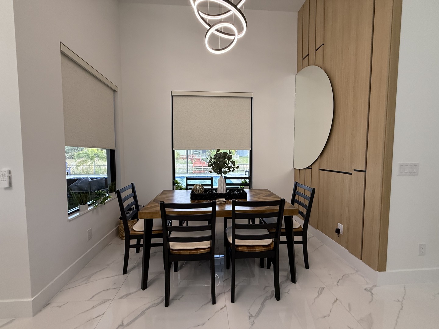 Selbstverständlich sind alle vier Schlafzimmer mit begehbaren Kleiderschränken ausgestattet, eines davon kann zudem als Büro genutzt werden. Die zusätzlichen beiden Badezimmer – eines mit direktem Poolzugang – sind ebenso stilvoll und durchdacht gestaltet und verfügen ebenfalls über begehbare Duschen.