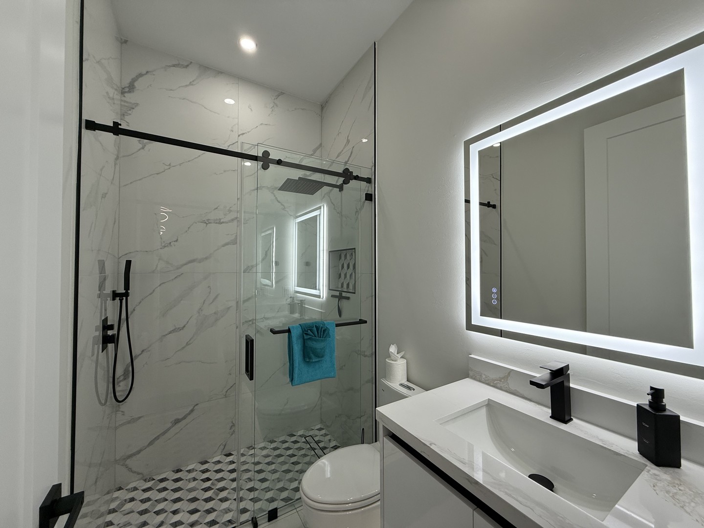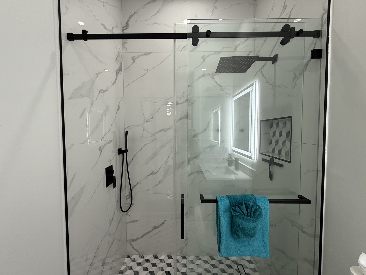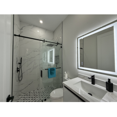feature walk-in showers.