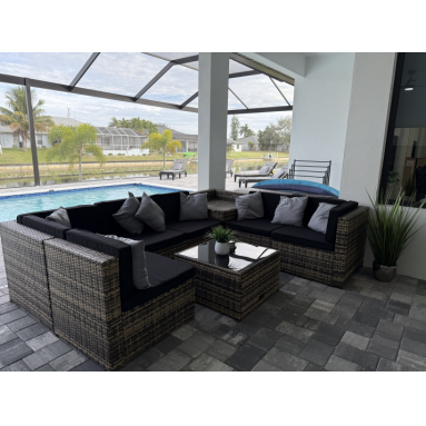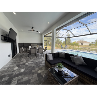 Unsere Neubauvilla mit atemberaubenden Kanalblick und beheizbarem Pool befindet sich in einer ruhigen aber dennoch zentralen Wohngegend im begehrten Südwesten von Cape Coral. Von hier aus haben Sie eine sehr gute Anbindung, Einkaufsmöglichkeiten und Restaurants sind in wenigen Minuten zu erreichen. Mit seinem modernen Baustil, vier wunderschön eingerichteten Schlafzimmern, drei modernen Badezimmern, einer großzügigen Garage und einer gepflasterten Auffahrt ist dieses Haus ein absoluter Traum.